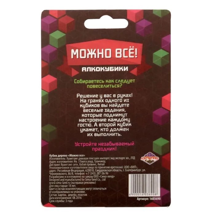 Купить кубик "можно все", алкокубики для принятия решений от 60 руб. с доставкой до пункта выдачи в Пыталово. Интернет магазин ДекаМаркет. Оплата при получении.
